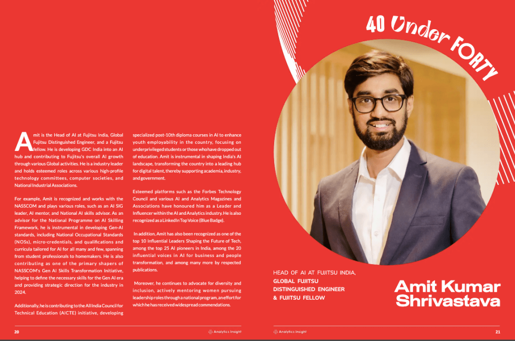 I am honored to be recognized as one of the leading Artificial Intelligence Innovators by Analytics Insight®. I learned that Analytics Insight is the world’s first print and digital publication on artificial intelligence, big data, and analytics. You can read about me in the magazine under 40 under 40 AI Innovators.